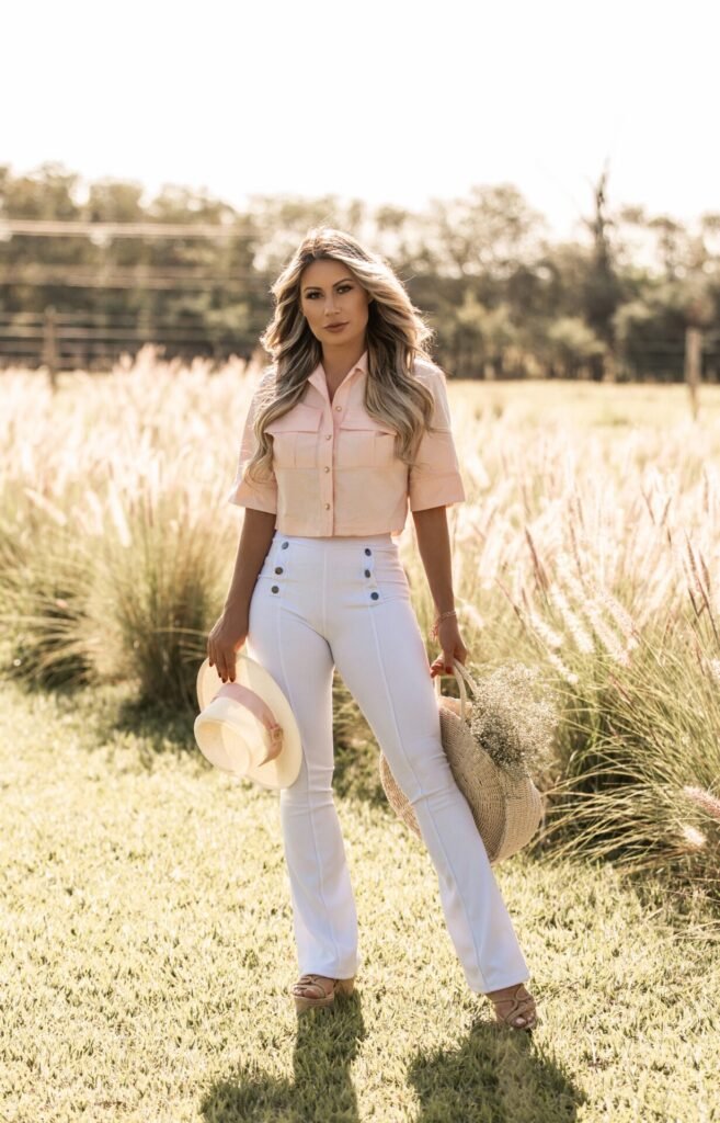 Calça de Ilhós semi flare jacquard nubia