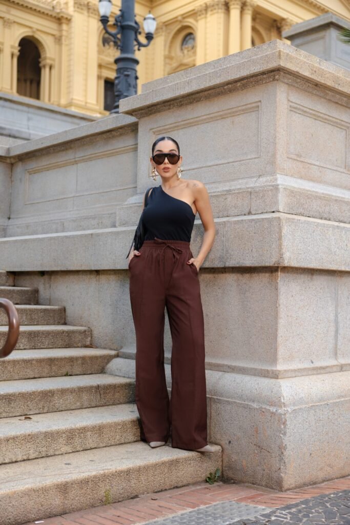 Calça pantalona com elástico no cós