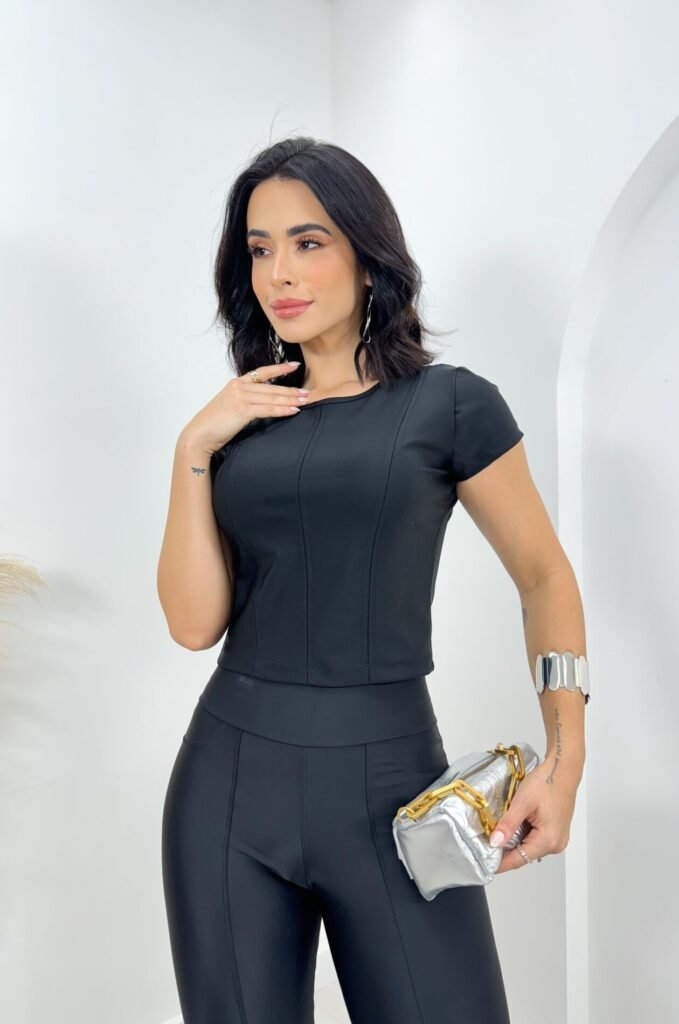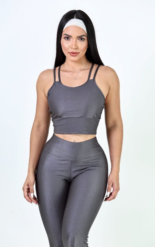 Conjunto Fitness calça e top Tecido Aruba – Poliamida + Elastano