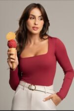 Confeccionada em malha poliamida com toque macio, ela tem modelagem ajustada, que valoriza o corpo com conforto. O decote quadrado traz um charme moderno e refinado, ideal para composições tanto casuais quanto mais elaboradas. Uma peça-chave para todas as estações!
