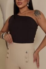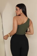 Seu design de um ombro só proporciona um visual elegante e ousado, perfeito para composições que vão do casual chic ao look noite. O caimento ajustado valoriza a silhueta sem abrir mão da liberdade de movimento.