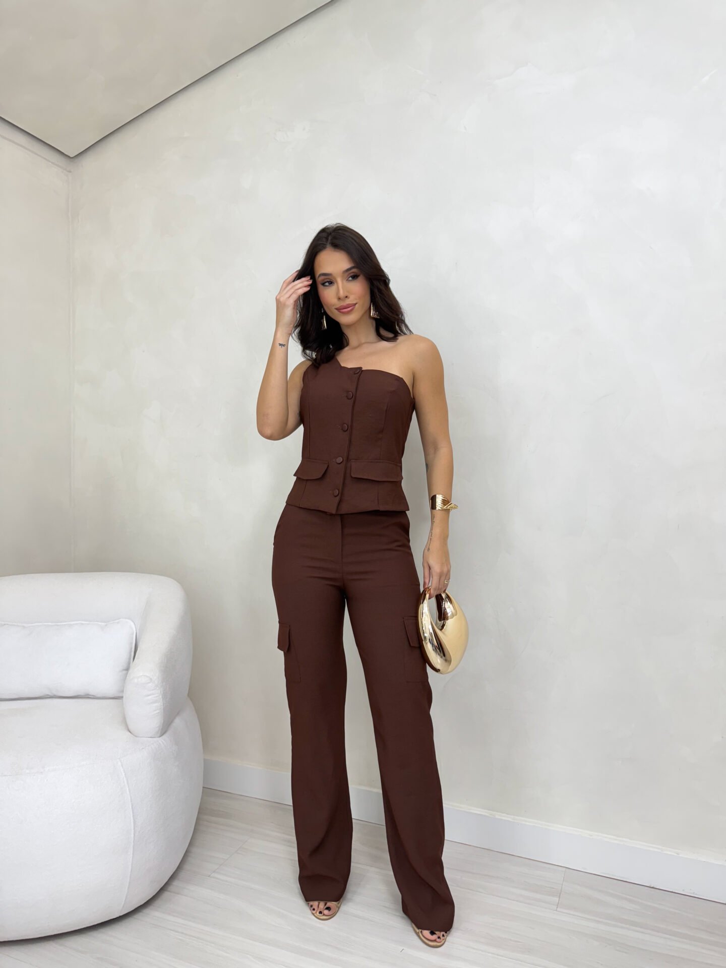 Colete ombro único alfaiataria