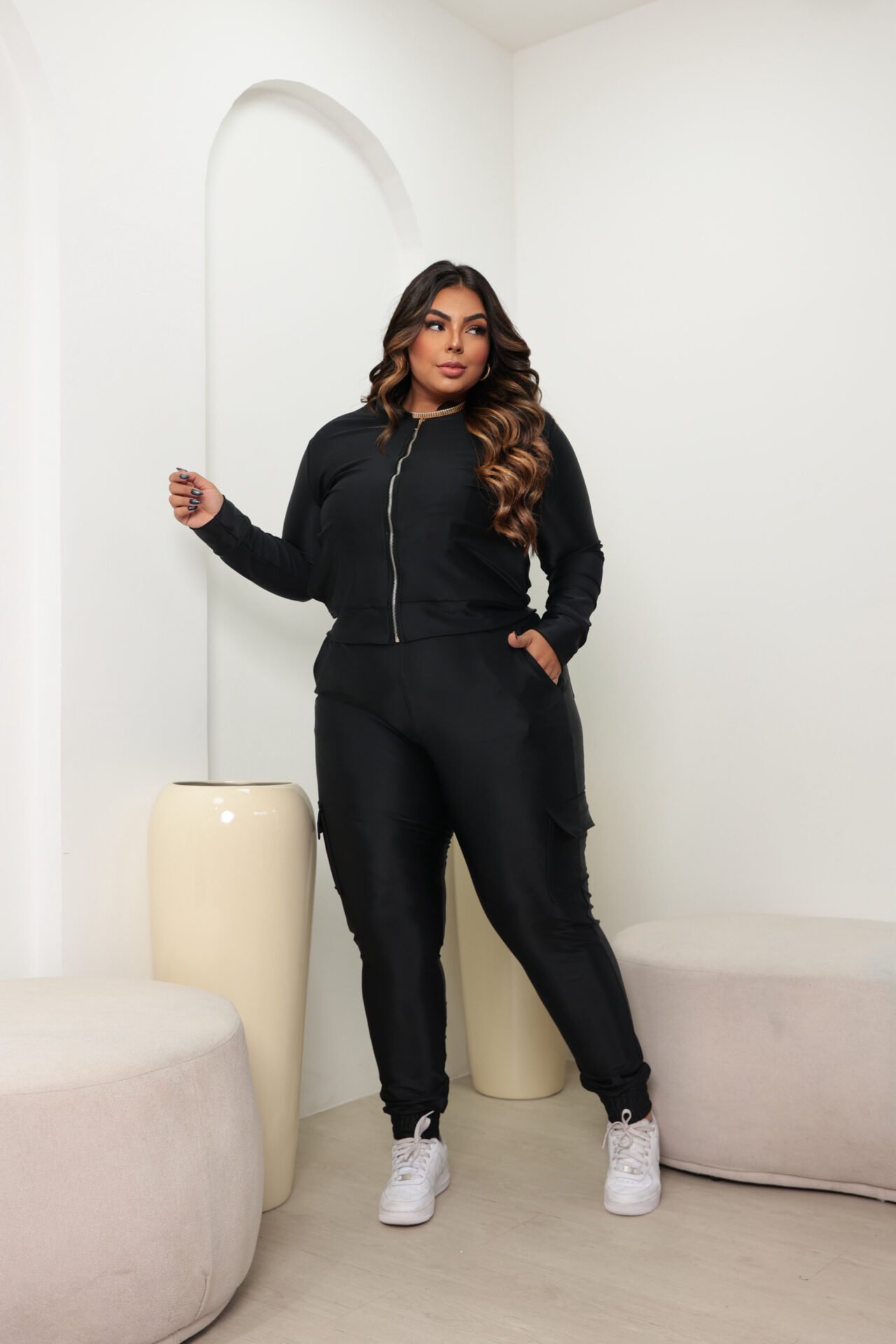 A jaqueta com zíper metal niquelado de alta qualidade, traz um estilo motoqueiro, é uma peça que transcende modismos e épocas, tornando-se um ícone atemporal de estilo e atitude. uma releitura no famoso tecido de Poliamida PRADA, essa jaqueta rapidamente conquistou o mundo da moda, sendo adotada por diversos grupos e subculturas como um símbolo de rebeldia e individualidade.
